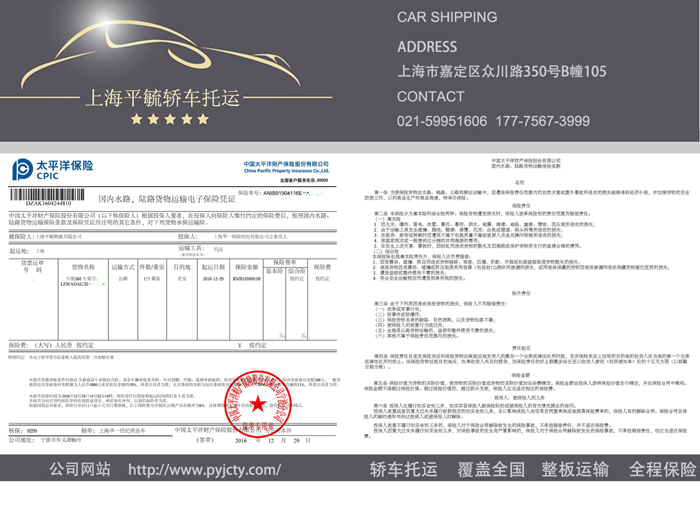 上海平毓物流有限公司:主要以試驗車巡展車、二手車、私家車、事故車、特大型疑難車型的托運業務,北京、沈陽、長春、哈爾濱快速到達。運價低,所運車輛全程保險,運輸車輛全部衛星定位。我們擁有一支強大的運輸隊伍,管理系統實行計算機網絡化,信息化管理。保證了快速、準確及時快捷的運輸任務。